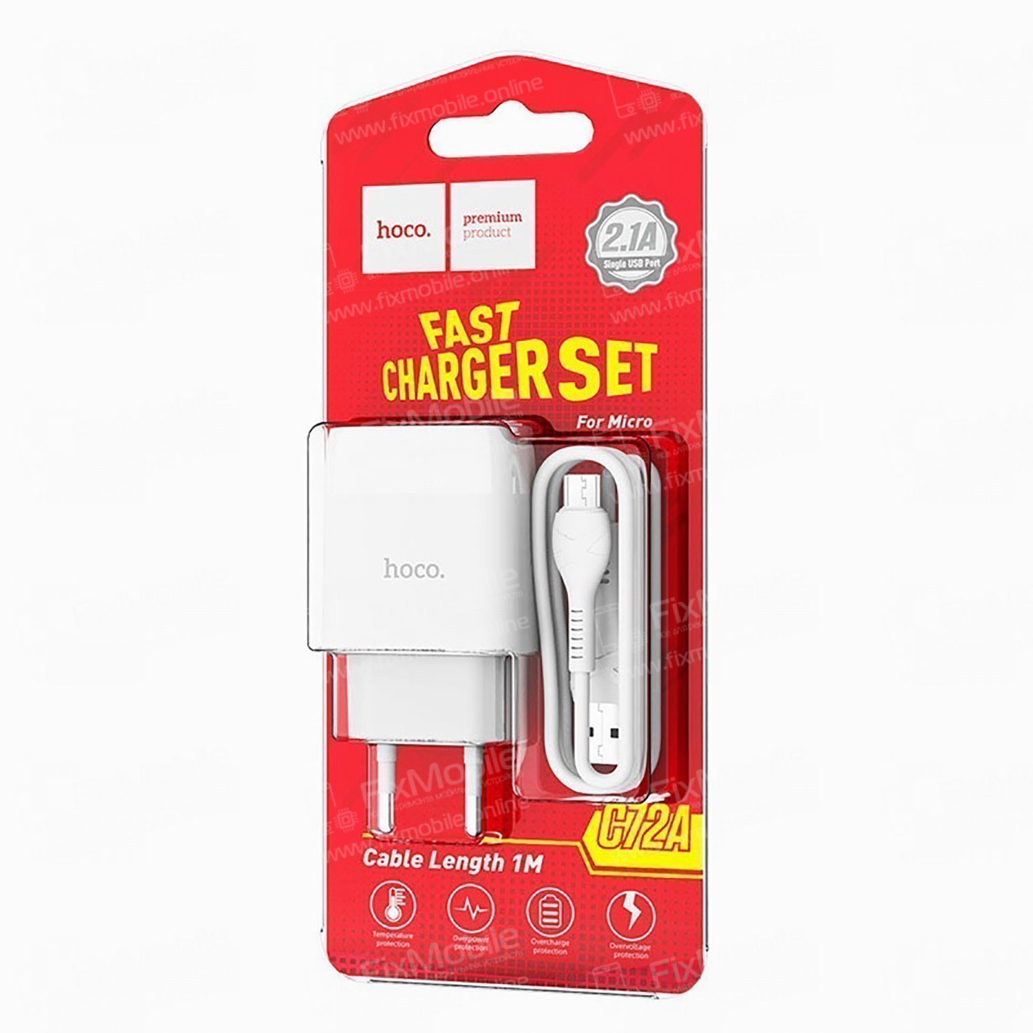 Сетевое зарядное устройство HOCO C72A Glorious с кабелем micro-USB (белое)